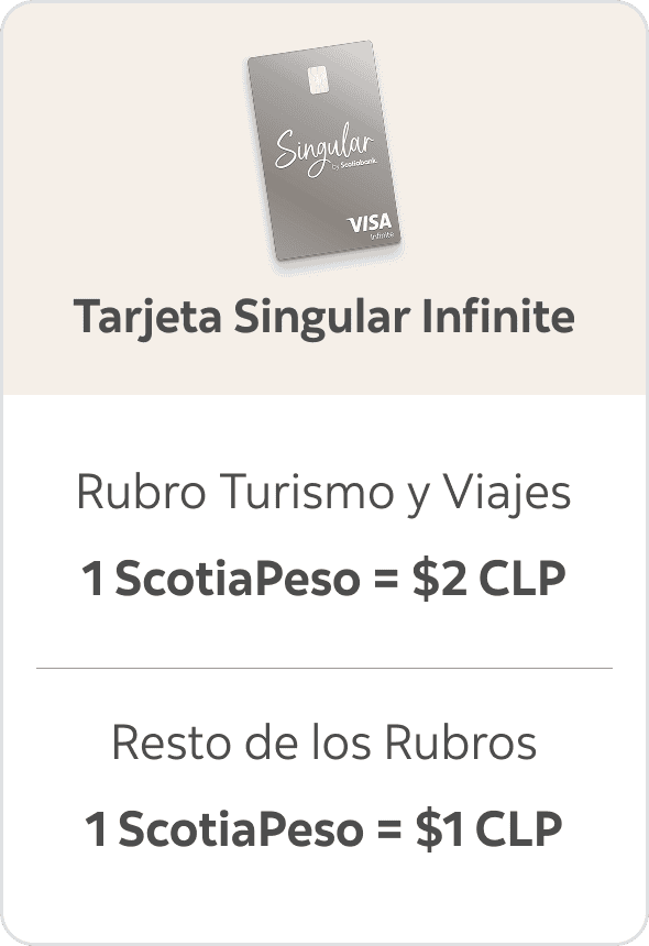 El programa Beneficios Scotia tiene un sistema aculumativo de ScotiaPesos que premia por cada compra que se realiza con las Tarjetas de Crédito Scotiabank. Los ScotiaPesos se pueden canjear por compras, gift cards, productos especiales de temporada, entradas al cine, sorteos, juegos y mucho más.